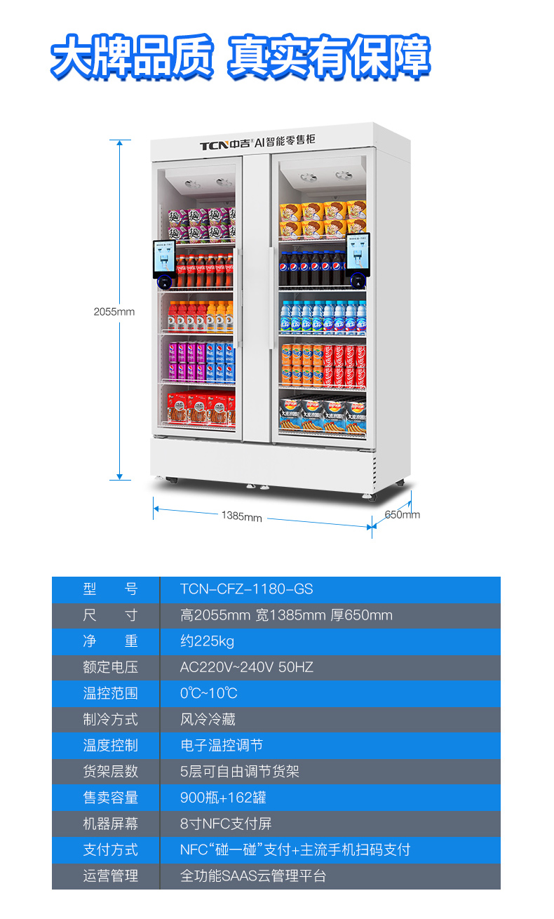1180升NFC扫码零食饮料大容量自动售货机AI智能售货柜