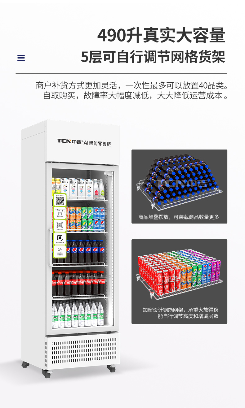 490升AI智能售货柜扫码开门自动售货机零食饮料自助售卖机